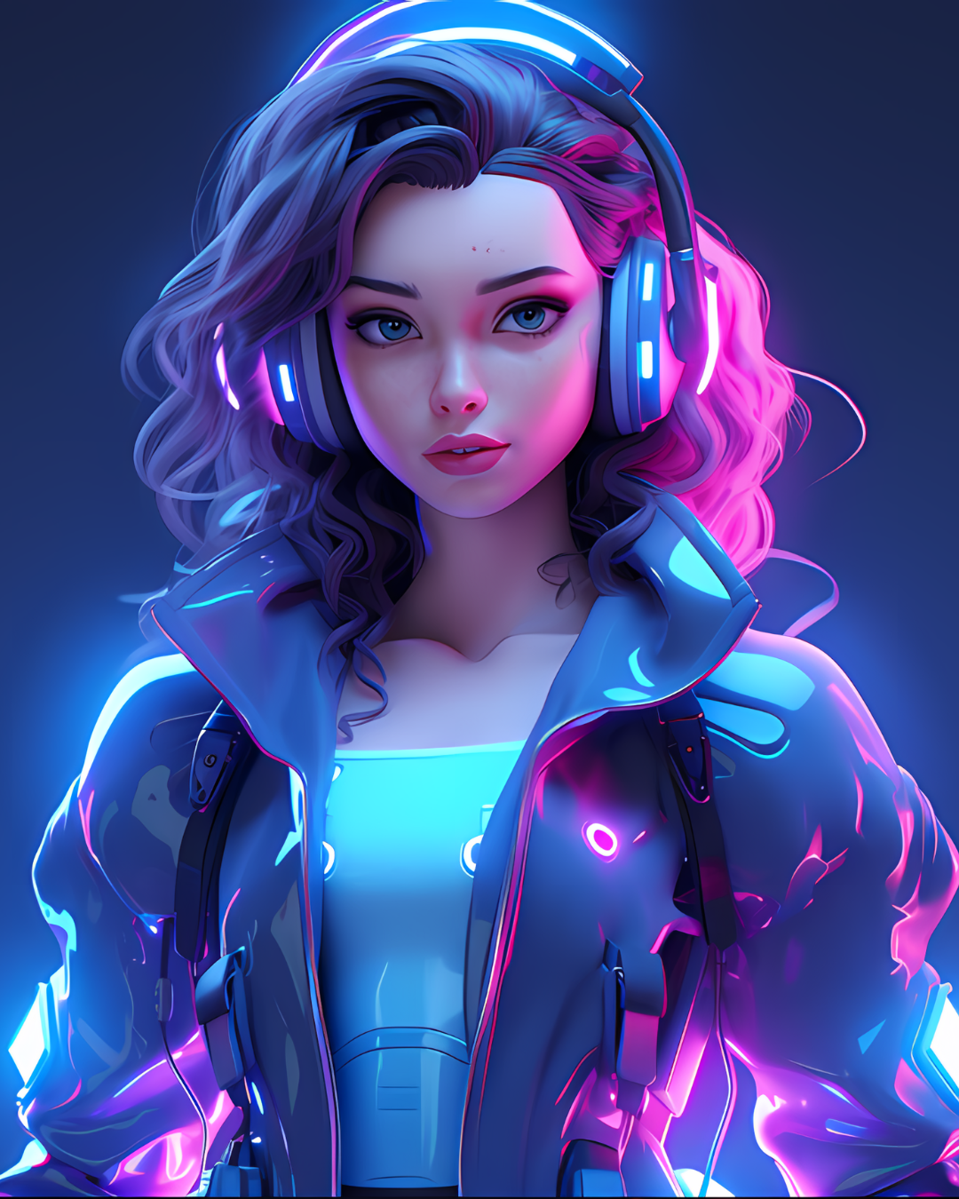 Наша кібер-дівчина символізує перетин реальності та цифрового простору, де кожен штрих, кожен піксель стають інструментами для втілення ваших мрій. Вона нагадує, що майбутнє мистецтва вже тут, і можливості безмежні.